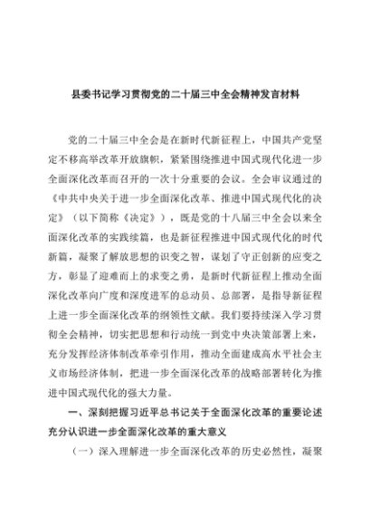 / 【七哥公文】2024年:县委书记学习贯彻党的二十届三中全会精神发言材料+更多免费公文+VX:QiGeGongWen2024