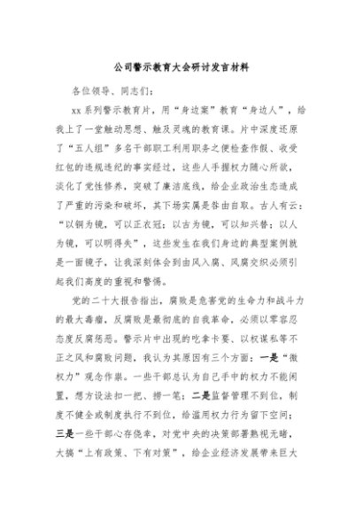 / 【七哥公文】2024年:公司警示教育大会研讨发言材料+更多免费公文+VX:QiGeGongWen2024
