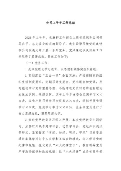 / 【七哥公文】2024年:公司上半年工作总结+更多免费公文+VX:QiGeGongWen2024