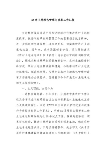 / 【七哥公文】2024年:XX市土地承包管理与改革工作汇报+更多免费公文+VX:QiGeGongWen2024