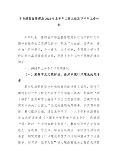 【七哥公文】2024年:县市场监督管理局2024年上半年工作总结及下半年工作计划+更多免费公文+VX:QiGeGongWen2024