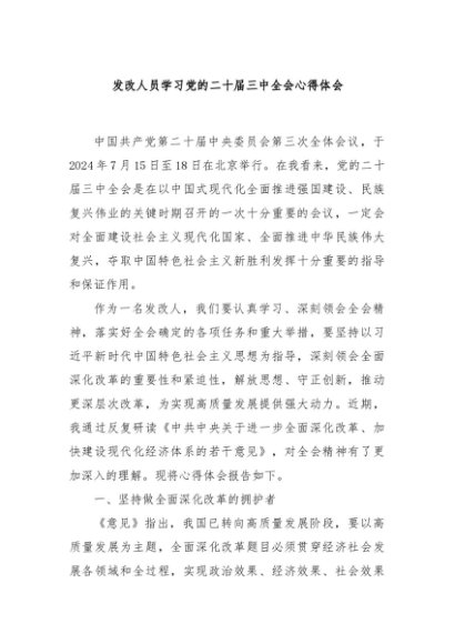 / 【七哥公文】2024年:发改人员学习党的二十届三中全会心得体会+更多免费公文+VX:QiGeGongWen2024
