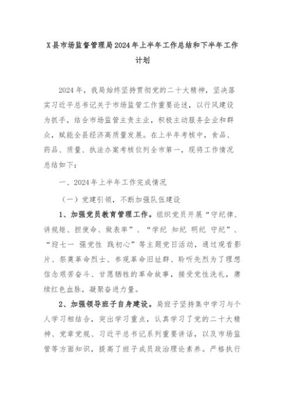 【七哥公文】2024年:X县市场监督管理局2024年上半年工作总结和下半年工作计划+更多免费公文+VX:QiGeGongWen2024