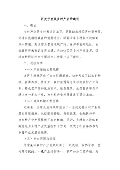 / 【七哥公文】2024年:区关于发展乡村产业的建议+更多免费公文+VX:QiGeGongWen2024