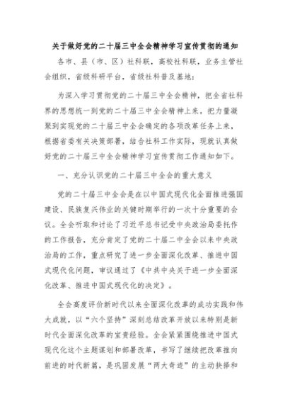 / 【七哥公文】2024年:关于做好党的二十届三中全会精神学习宣传贯彻的通知+更多免费公文+VX:QiGeGongWen2024
