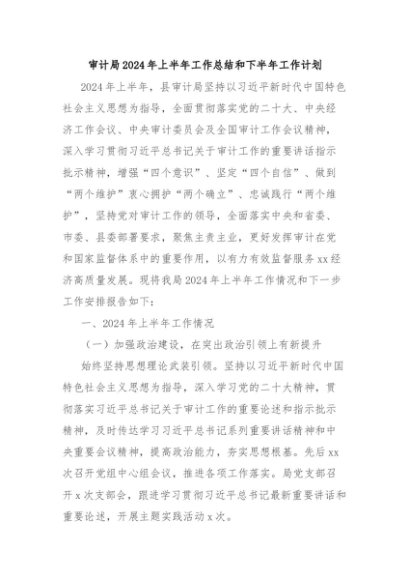 / 【七哥公文】2024年:审计局2024年上半年工作总结和下半年工作计划+更多免费公文+VX:QiGeGongWen2024