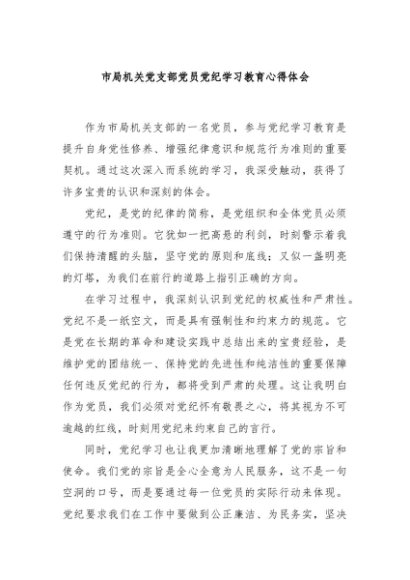 / 【七哥公文】2024年:市局机关党支部党员党纪学习教育心得体会+更多免费公文+VX:QiGeGongWen2024