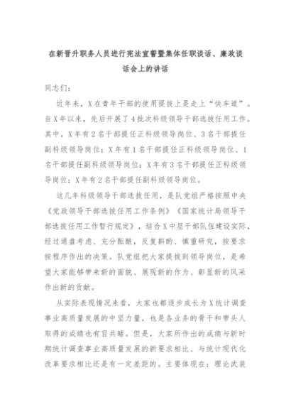 【七哥公文】2024年:在新晋升职务人员进行宪法宣誓暨集体任职谈话、廉政谈话会上的讲话+更多免费公文+VX:QiGeGongWen2024