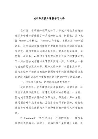 【七哥公文】2024年:城市品质提升课程学习心得+更多免费公文+VX:QiGeGongWen2024