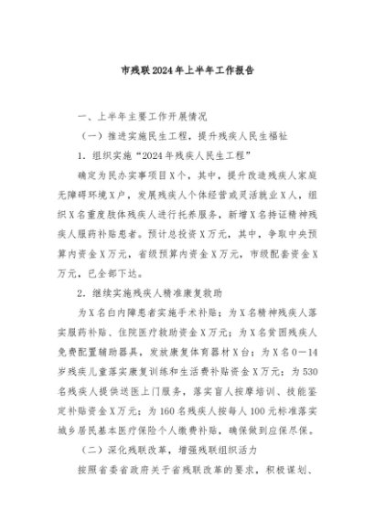 / 【七哥公文】2024年:市残联2024年上半年工作报告+更多免费公文+VX:QiGeGongWen2024