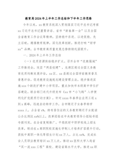 / 【七哥公文】2024年:教育局2024年上半年工作总结和下半年工作思路+更多免费公文+VX:QiGeGongWen2024