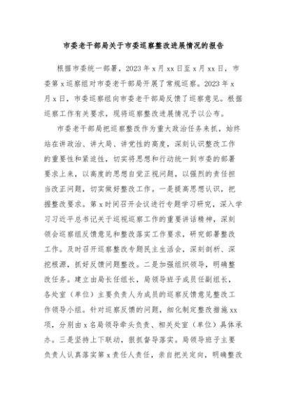 / 【七哥公文】2024年:市委老干部局关于市委巡察整改进展情况的报告+更多免费公文+VX:QiGeGongWen2024