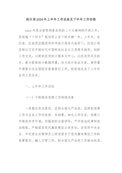 / 【七哥公文】2024年:统计局2024年上半年工作总结及下半年工作安排+更多免费公文+VX:QiGeGongWen2024