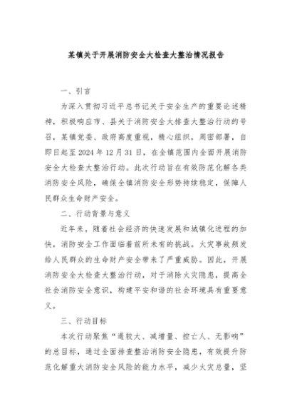 / 【七哥公文】2024年:某镇关于开展消防安全大检查大整治情况报告+更多免费公文+VX:QiGeGongWen2024