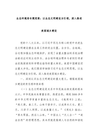 【七哥公文】2024年:生态环境局专题党课:以生态文明建设为引领,深入推进美丽城乡建设+更多免费公文+VX:QiGeGongWen2024