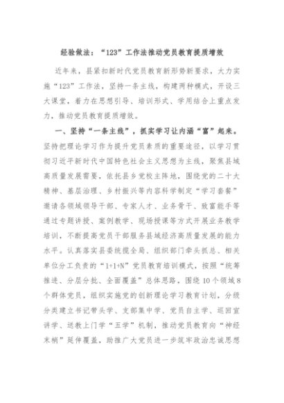/ 【七哥公文】2024年:经验做法:“123”工作法推动党员教育提质增效+更多免费公文+VX:QiGeGongWen2024
