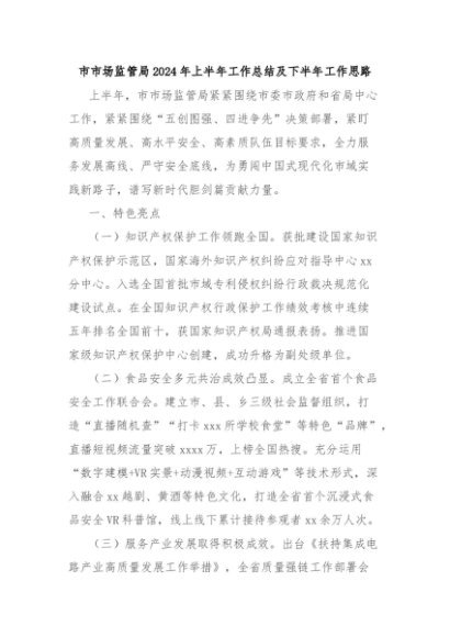 【七哥公文】2024年:市市场监管局2024年上半年工作总结及下半年工作思路+更多免费公文+VX:QiGeGongWen2024
