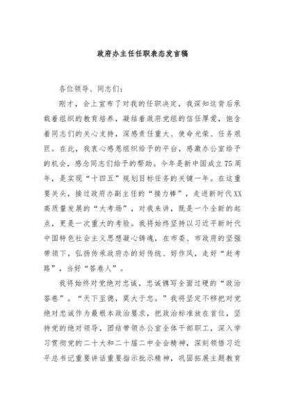 / 【七哥公文】2024年:政府办主任任职表态发言稿+更多免费公文+VX:QiGeGongWen2024