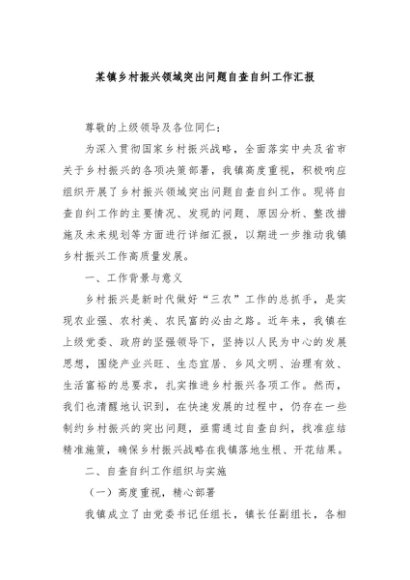/ 【七哥公文】2024年:某镇乡村振兴领域突出问题自查自纠工作汇报+更多免费公文+VX:QiGeGongWen2024