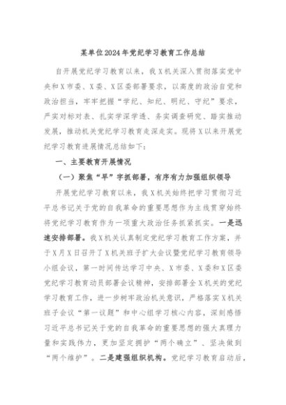 / 【七哥公文】2024年:某单位2024年党纪学习教育工作总结+更多免费公文+VX:QiGeGongWen2024