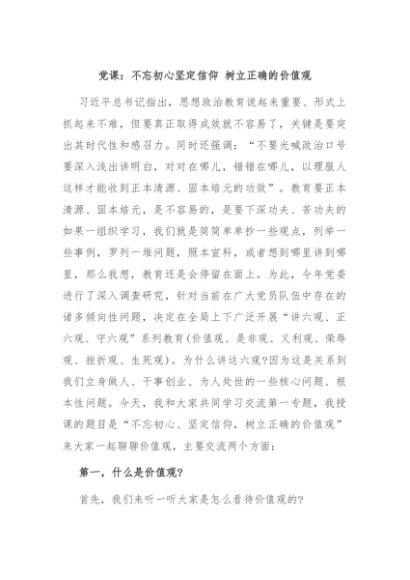【七哥公文】2024年:党课:不忘初心坚定信仰 树立正确的价值观+更多免费公文+VX:QiGeGongWen2024