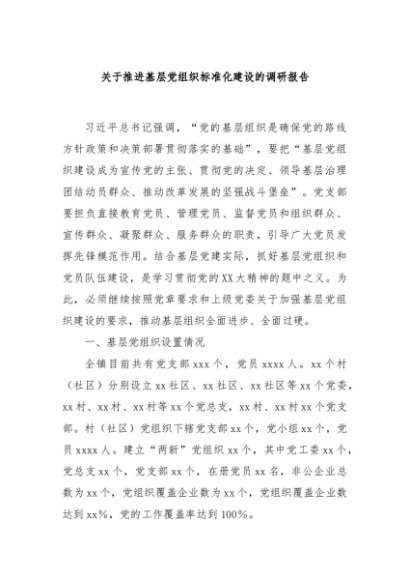 / 【七哥公文】2024年:关于推进基层党组织标准化建设的调研报告+更多免费公文+VX:QiGeGongWen2024