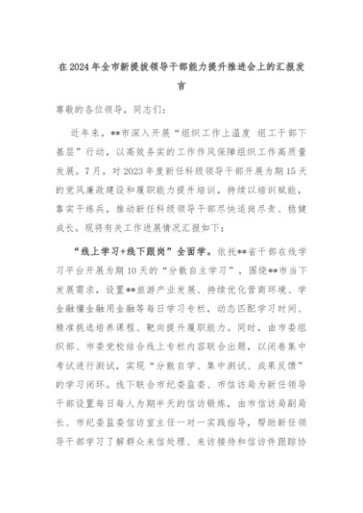 【七哥公文】2024年:在2024年全市新提拔领导干部能力提升推进会上的汇报发言+更多免费公文+VX:QiGeGongWen2024
