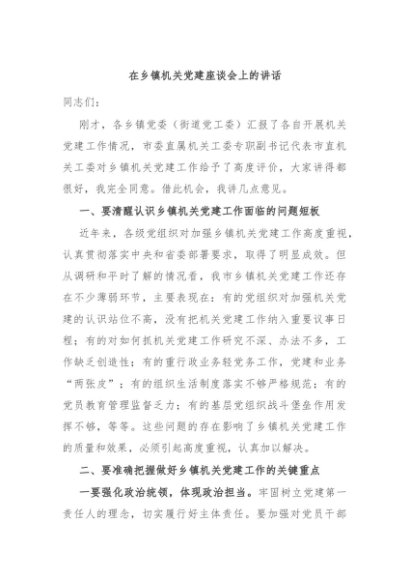 / 【七哥公文】2024年:在乡镇机关党建座谈会上的讲话+更多免费公文+VX:QiGeGongWen2024
