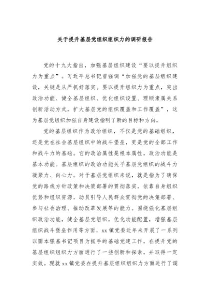 / 【七哥公文】2024年:关于提升基层党组织组织力的调研报告+更多免费公文+VX:QiGeGongWen2024