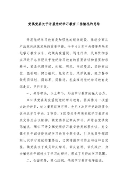 / 【七哥公文】2024年:党镇党委关于开展党纪学习教育工作情况的总结+更多免费公文+VX:QiGeGongWen2024