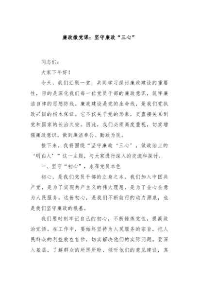 / 【七哥公文】2024年:廉政微党课:坚守廉政“三心”+更多免费公文+VX:QiGeGongWen2024