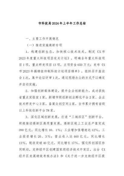 / 【七哥公文】2024年:市科技局2024年上半年工作总结+更多免费公文+VX:QiGeGongWen2024
