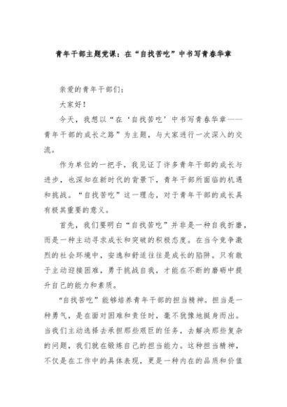/ 【七哥公文】2024年:青年干部主题党课:在“自找苦吃”中书写青春华章+更多免费公文+VX:QiGeGongWen2024