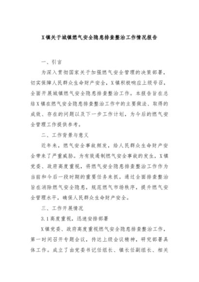 / 【七哥公文】2024年:X镇关于城镇燃气安全隐患排查整治工作情况报告+更多免费公文+VX:QiGeGongWen2024