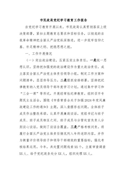 / 【七哥公文】2024年:市民政局党纪学习教育工作报告+更多免费公文+VX:QiGeGongWen2024