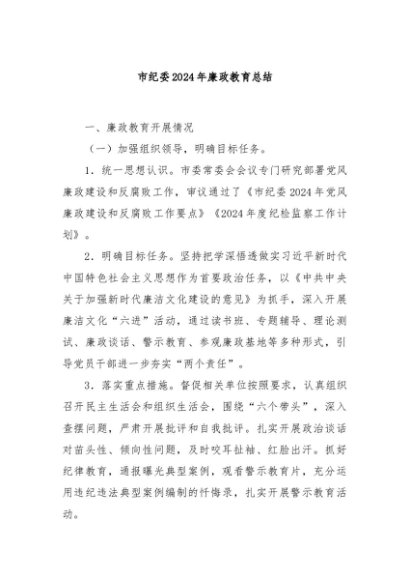 / 【七哥公文】2024年:市纪委2024年廉政教育总结+更多免费公文+VX:QiGeGongWen2024