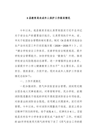 / 【七哥公文】2024年:X县教育局未成年人保护工作落实情况+更多免费公文+VX:QiGeGongWen2024