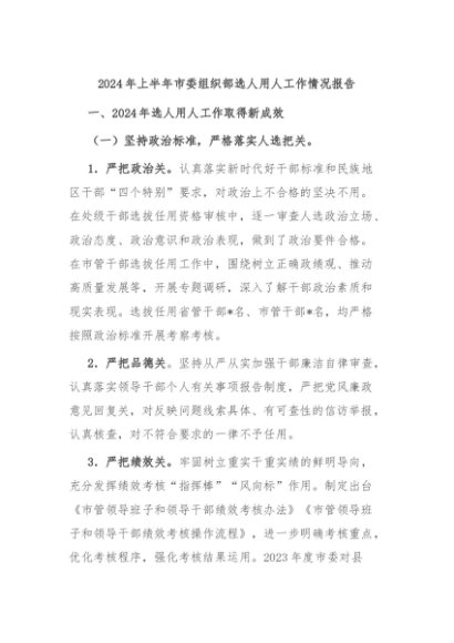 / 【七哥公文】2024年:2024年上半年市委组织部选人用人工作情况报告+更多免费公文+VX:QiGeGongWen2024