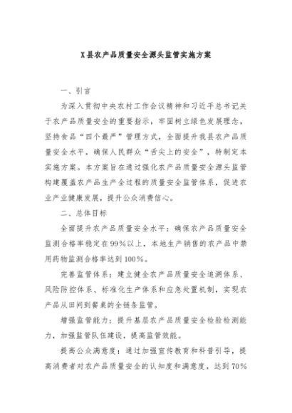 / 【七哥公文】2024年:X县农产品质量安全源头监管实施方案(1)+更多免费公文+VX:QiGeGongWen2024