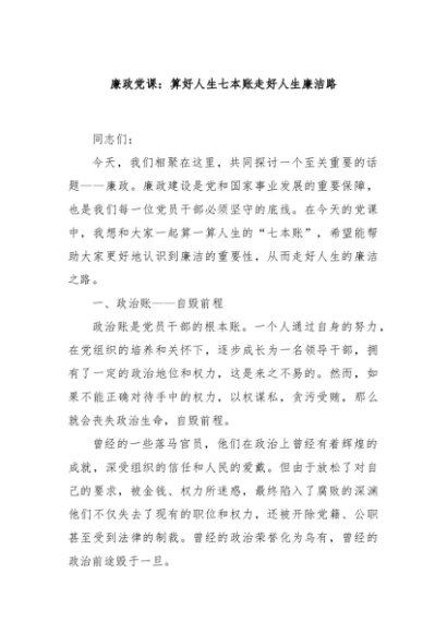 / 【七哥公文】2024年:廉政党课:算好人生七本账走好人生廉洁路+更多免费公文+VX:QiGeGongWen2024