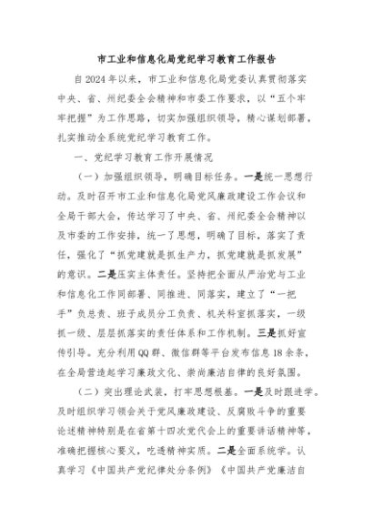 / 【七哥公文】2024年:市工业和信息化局党纪学习教育工作报告+更多免费公文+VX:QiGeGongWen2024