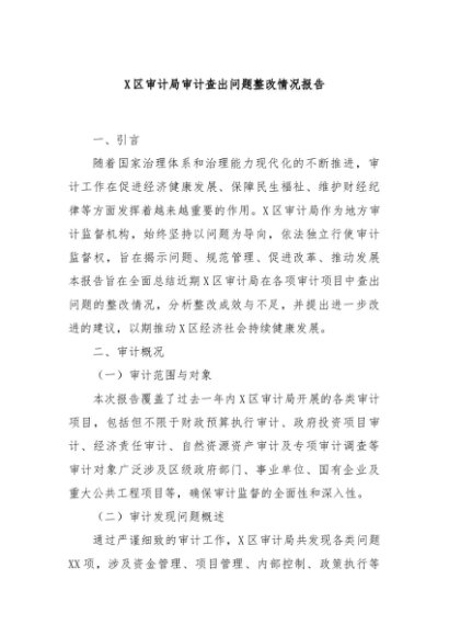 / 【七哥公文】2024年:X区审计局审计查出问题整改情况报告+更多免费公文+VX:QiGeGongWen2024