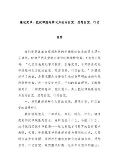 【七哥公文】2024年:廉政党课:把纪律规矩转化为政治自觉、思想自觉、行动自觉+更多免费公文+VX:QiGeGongWen2024