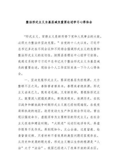 / 【七哥公文】2024年:整治形式主义为基层减负重要论述学习心得体会+更多免费公文+VX:QiGeGongWen2024