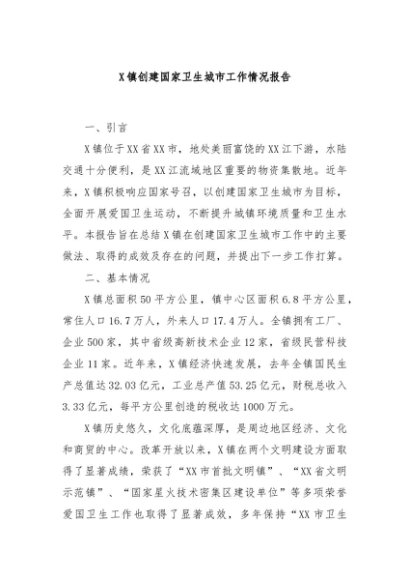 / 【七哥公文】2024年:X镇创建国家卫生城市工作情况报告+更多免费公文+VX:QiGeGongWen2024