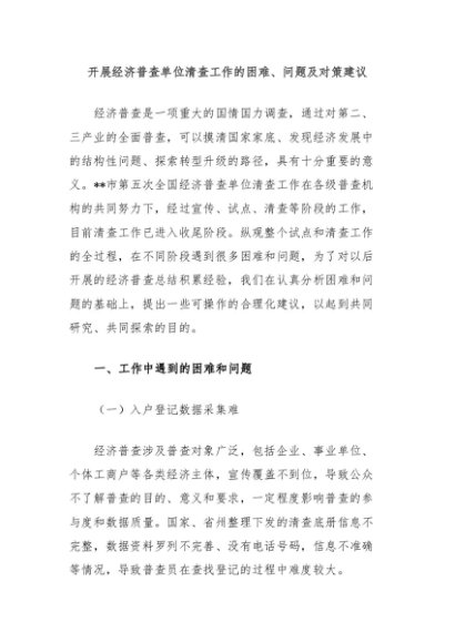 / 【七哥公文】2024年:开展经济普查单位清查工作的困难、问题及对策建议+更多免费公文+VX:QiGeGongWen2024