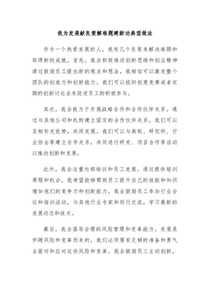 【七哥公文】2024年:我为发展献良策解难题建新功典型做法+更多免费公文+VX:QiGeGongWen2024