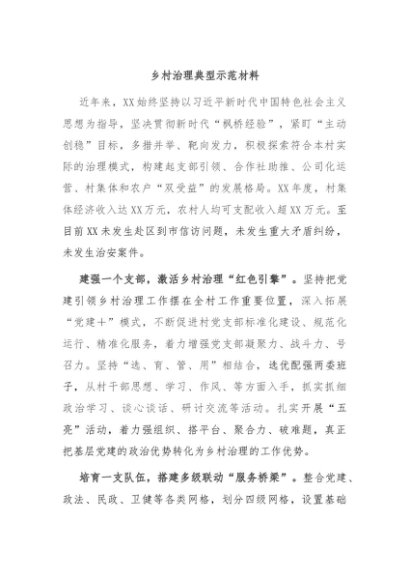 / 【七哥公文】2024年:乡村治理典型示范材料+更多免费公文+VX:QiGeGongWen2024