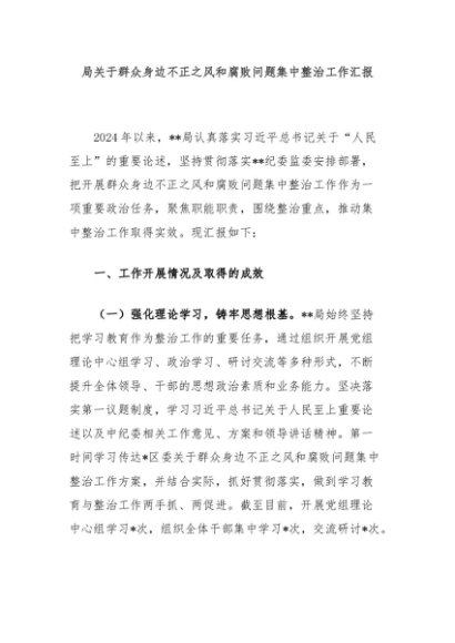 / 【七哥公文】2024年:局关于群众身边不正之风和腐败问题集中整治工作汇报+更多免费公文+VX:QiGeGongWen2024