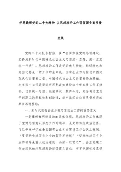 【七哥公文】2024年:学思践悟党的二十大精神 以思想政治工作引领国企高质量发展+更多免费公文+VX:QiGeGongWen2024